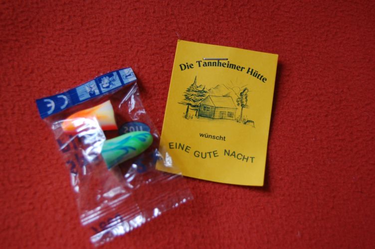 auf den Kissen lag ein Willkommens Gruß mit GuteNacht Wünschen und bunten Ohrenstöpseln .
