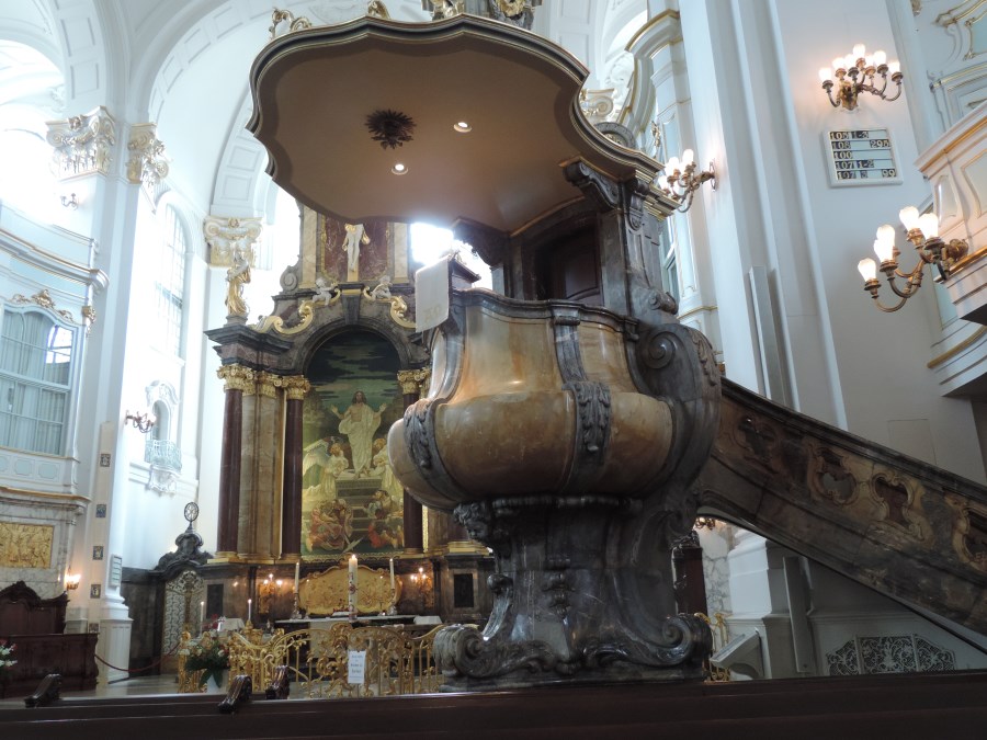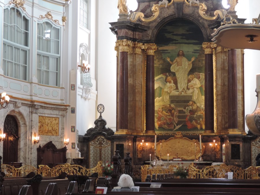 Da der Michel beim ersten Besuch schon gesperrt war, gingen wir erstmal da hin und besichtigten ihn innen. Der Pfarrer erwartete uns und gab uns die Hand und sagte; wie schön dass sie gekommen sind.