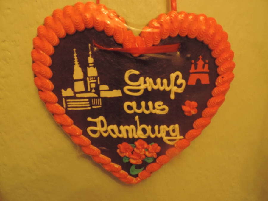 Anschließend gingen wir nochmals in den Hafen und kauften Lebkuchenherzen. Sigi kaufte mir eines zum Muttertag und mit Muttertagsspruch auch eines für Schwiegermutter und eines mit Gruss aus Hamburg als Mitbringsel für seine Schwester, die ja den Flug gesponsert hatte zu seinem Geburtstag.