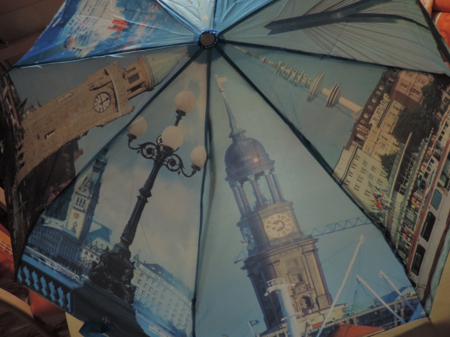 Total passend auch noch dazu - einen Regenschirm mit Hamburgmotiven.