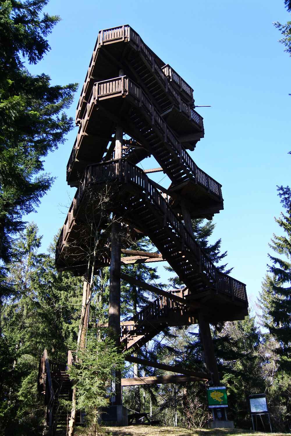 Die Warte liegt auf 835 m und man klettert viele Stufen hoch, um dann einen schönen Rundblick zu genießen. -