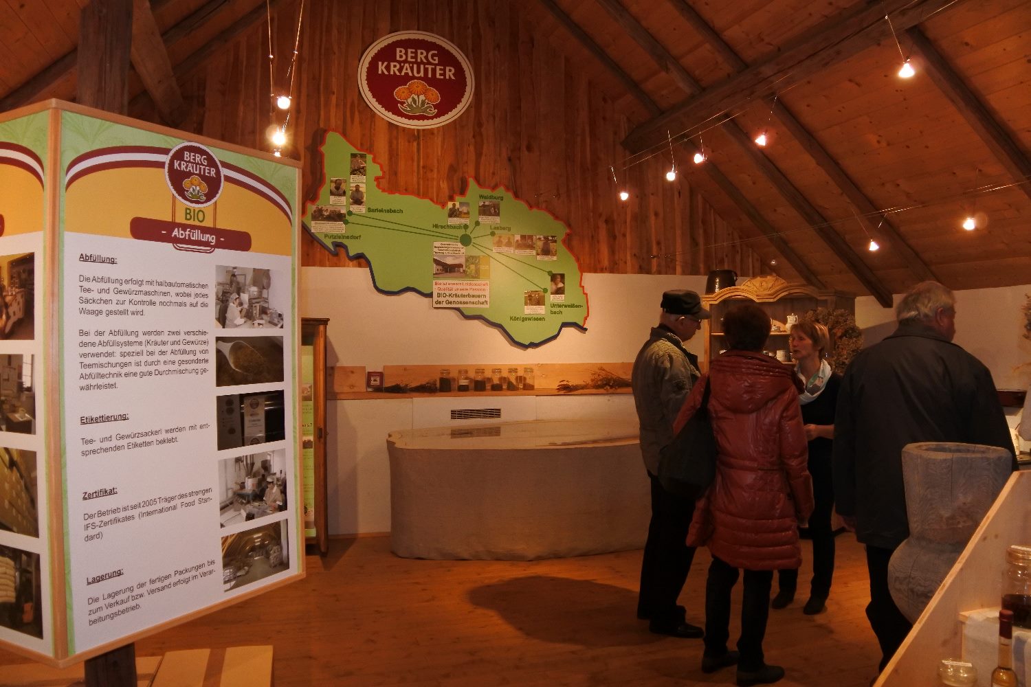 Die Gruppe wurde geteilt und so sahen wir erstmals einen Film über den Kräuteranbau und die Verwendungsmöglichkeiten, erhielten durch eine nette Bäuerin alle Informationen dazu und bekamen dann verschiedene Tees zur Verkostung.