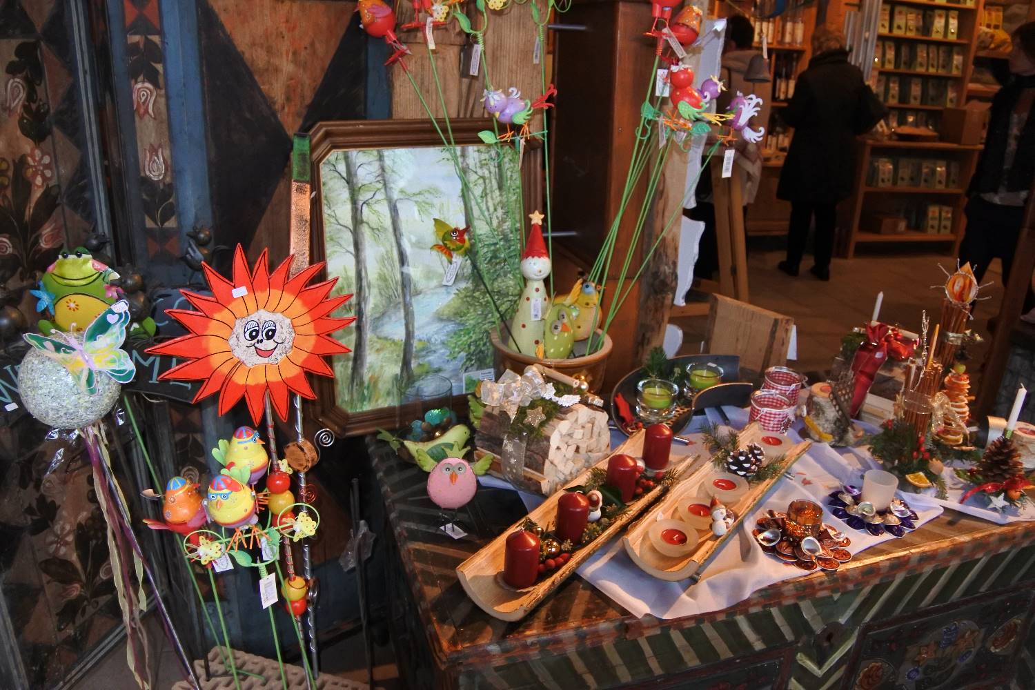Wir gingen durch den Wald zum Schloss empor und dort im Innenhof und auch in den Gebäuden waren ebenfalls wunderschöne Artikel zu sehen.