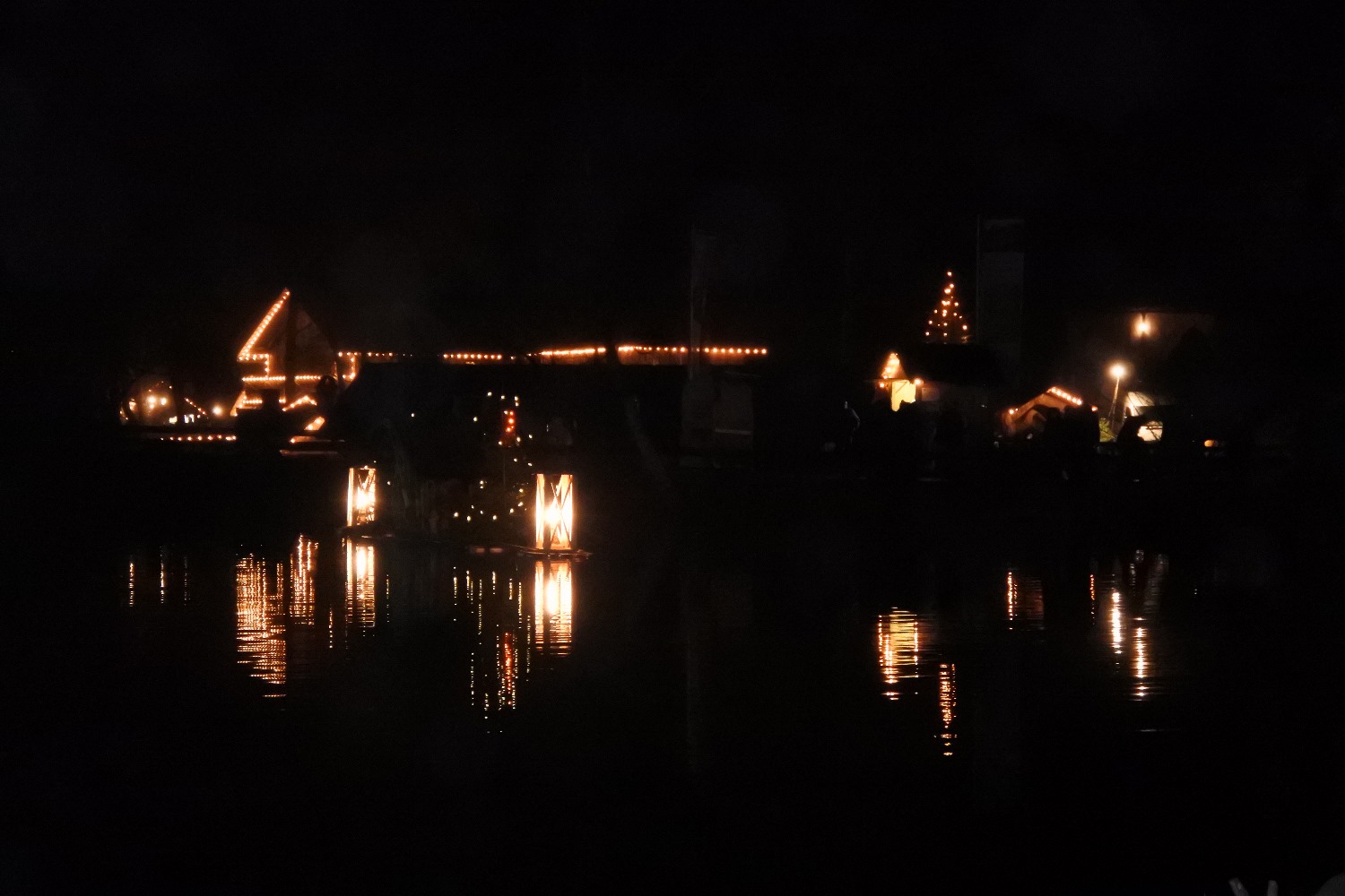 Je dunkler es wurde, desto schöner wurde die Stimmung. Es gab auch viele Leute aber das Gelände ist gut angelegt und so war es wunderschön. Am Teich fuhr nun auch ein Boot mit spielenden Musikern, das war besonders stimmungsvoll.