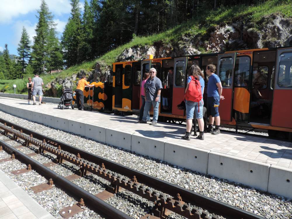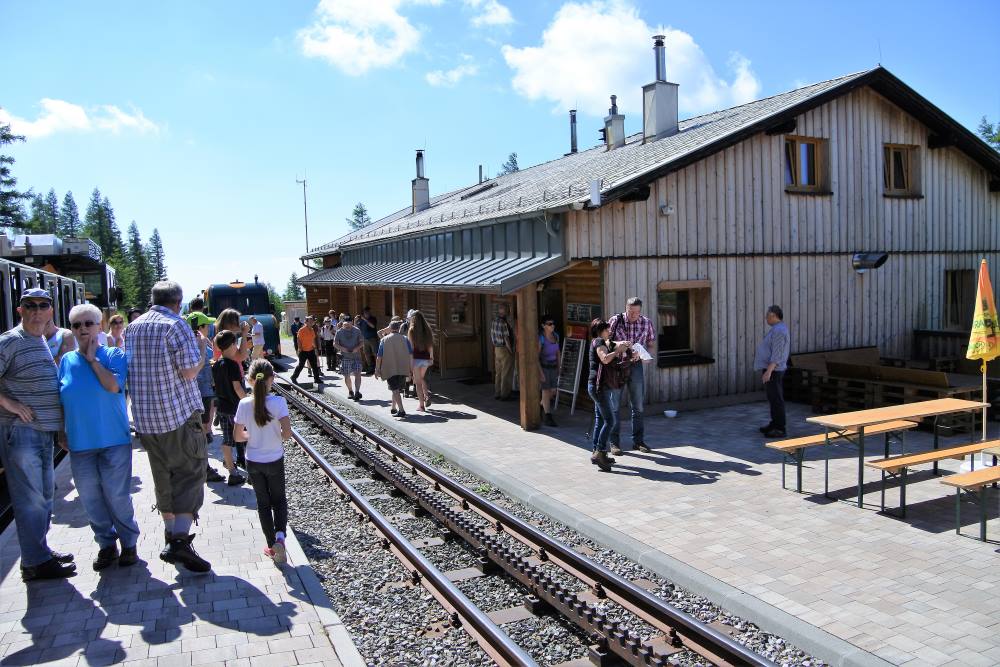 Im Bahnhofsbereich ist ein Schaustollen mit Einblicken indie Erbauung der Bahn sowie ein Kinderspielplatz und ein Bergrestaurant, in demman auch Zimmer mieten kann.