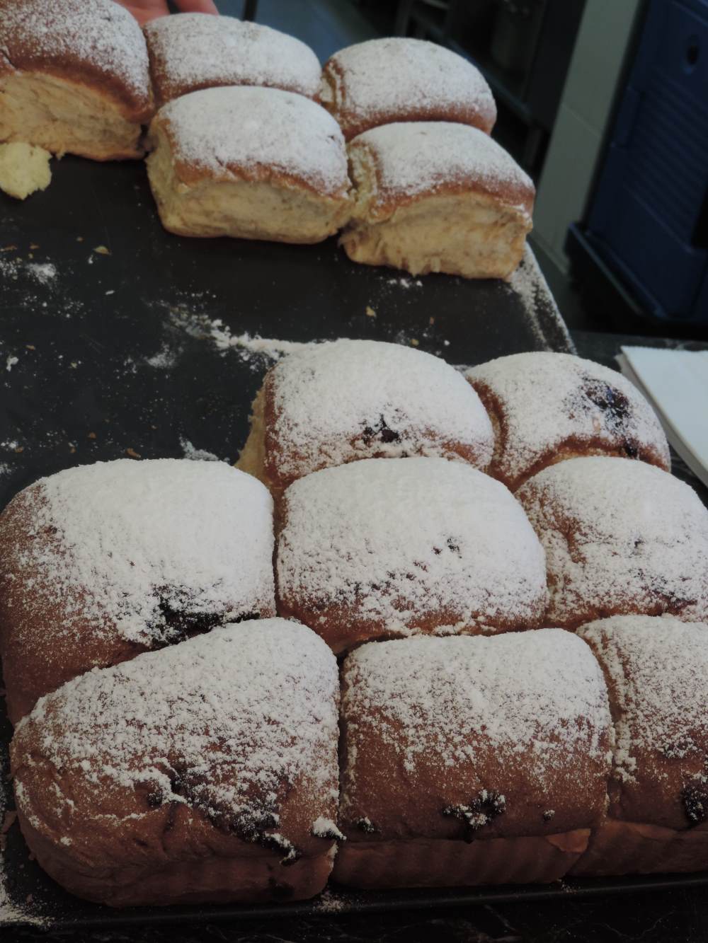 Ein Stück mussten wir natürlich auch probieren und um 2,90 € ist man dabei. Sie schmecken aber wirklich hervorragend, so flaumig und locker – ein Gedicht.