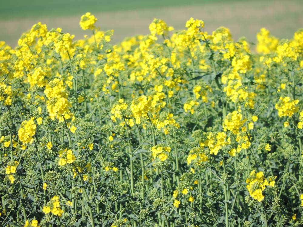 Auch Rapsfelder stehen in Blüte und leuchten herrlich gelb. -