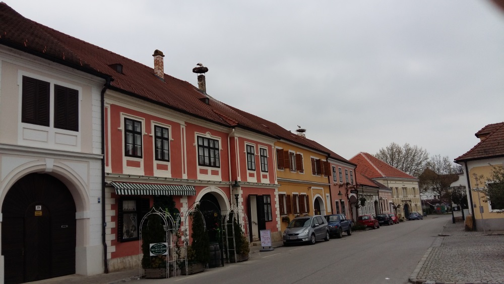 Nachdem wir die Blüten und Kirschbaum Alleen ausgiebig bewundert und erwandert haben, fuhren wir weiter nach Rust. Dieser Ort ist bekannt für seine Störche und auf fast jedem Rauchfang ist ein Nest und JUHU - es waren viele drin. Sie klapperten auch toll und flogen auch umher um Futter in den Weinbergen und Wiesen zu suchen. Bei der Fahrt haben wir immer wieder welche gesehen.