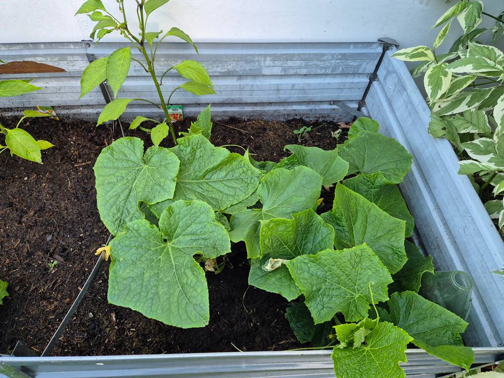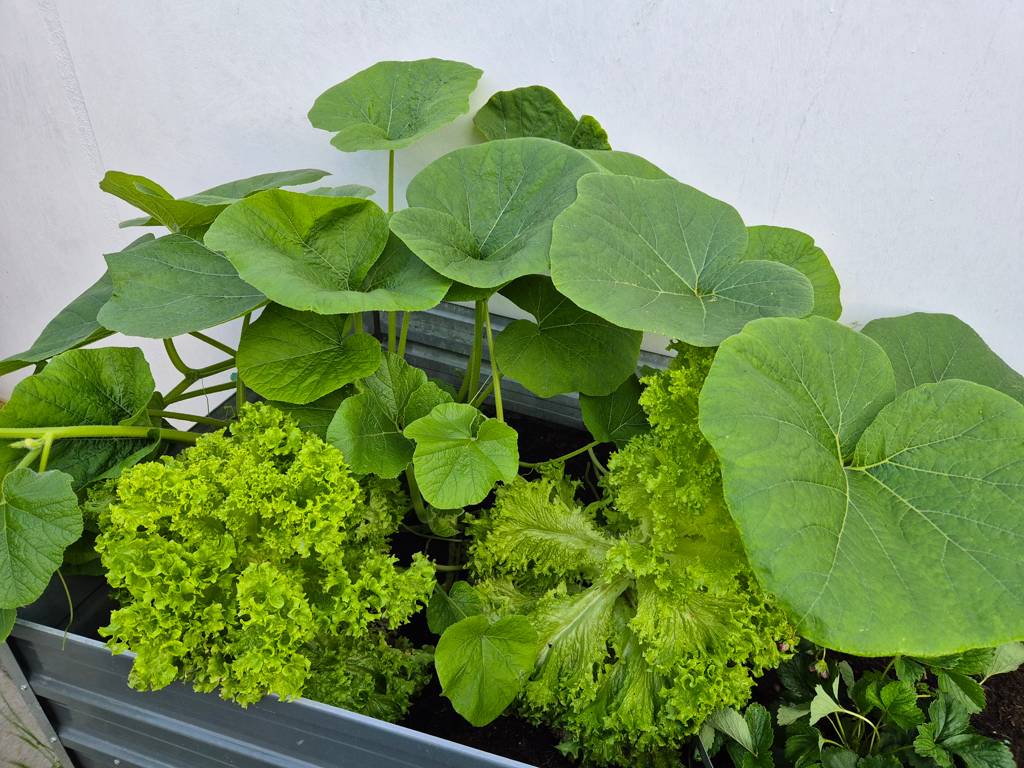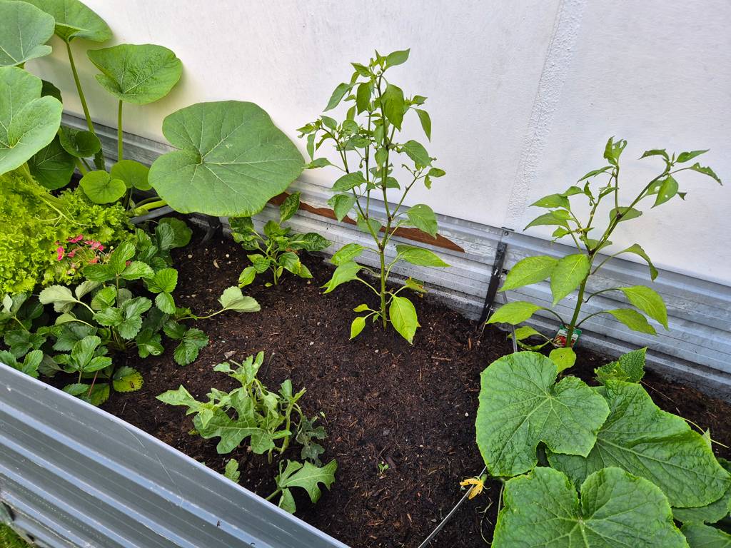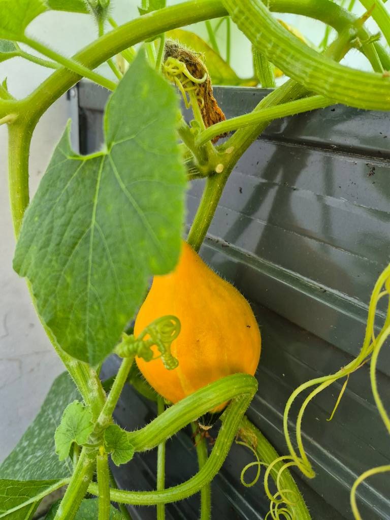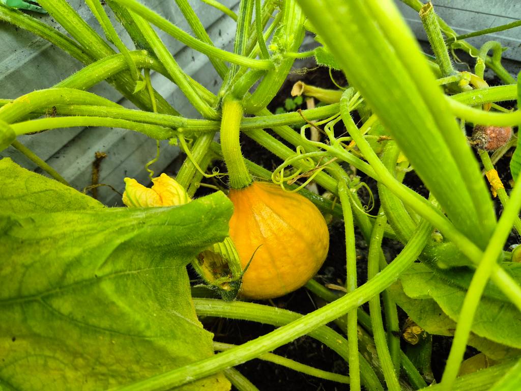Aktuell wuchern die Kürbisse. Wäre schön, wenn sie was werden. Und zumindest drei, vier Sonnenblumen haben überlebt.