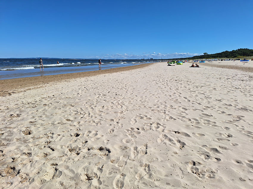 Der traumhafte Strand in Ahlbeck mit seinem feinen, hellen Sand – einfach herrlich! Ins Meer geht es schön sanft und bei 19-20 Grad kann man im August auch sehr gut schwimmen. Angenehm ist dabei auch, dass die Ostsee kaum salzig schmeckt, falls man mal zu viel Wasser schlucken sollte beim Schwimmen.