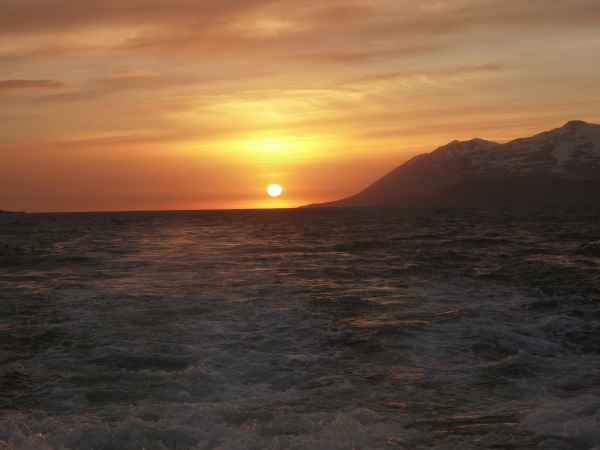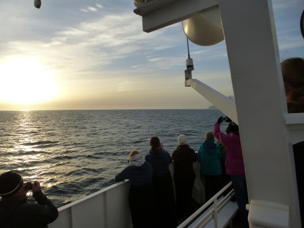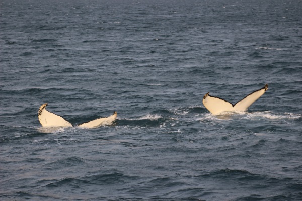 Die liessen aber auf sich warten, obwohl das Meer ganz ruhig war. Hatten einen schönen Platz oben auf dem Deck. 2 Stunden waren schon vergangen und immer noch nichts. In der Zwischenzeit wurde es auch kalt, aber es gab genügend Decken, so dass wir nicht frieren mussten. Endlich kurz vor Mitternacht wurden Buckelwale gesichtet. -