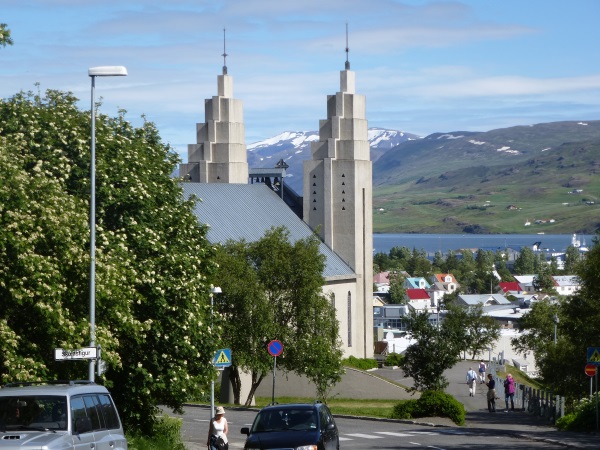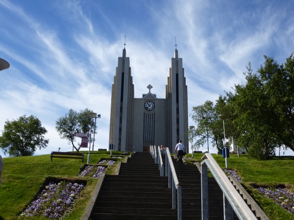 1. Bild, die Kirche von Akureyri, im Stil wie die Hallgrimskirkja in Reykjavik -