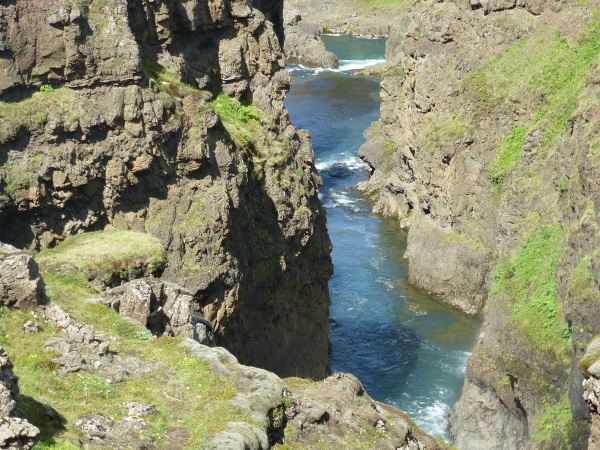 Niederschlag und das Wasser eines unterirdischen Flusses strömen hier in unzähligen Rinnsalen aus der Lava in den Gletscherfluss Hvita. Etwas weiter oben im Flusslauf befindet sich der Barnafoss, der «Kinder-Wasserfall».