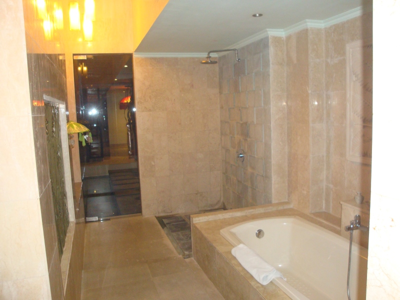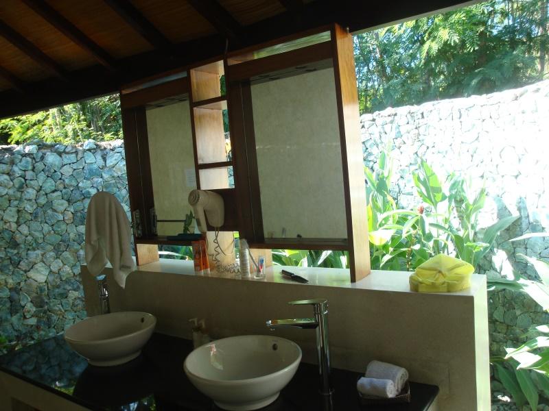 Unser Bungalow ist klasse, im offenen Bad schwirren Kolibri und im Kühlschrank steht Bintang bereit