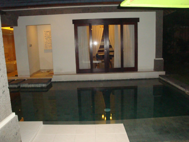 Abschied von Wakatobi, gerne wären wir noch geblieben. Am Airstrip warten wir halt wieder, Garuda kommt, aber keiner weiß wann. Der Flug selbst war schön, die Landschaft ist einfach herrlich.In Denpasar wurden wir erwartet und wieder zu unseren Villas gebracht, leider schon in der Dämmerung, so dass wir Pool und Garten wieder nicht genießen konnten. Stattdessen gab es eine Massage und ein gutes Essen: Mein winziges Fischlein hat mir geschmeckt ;D