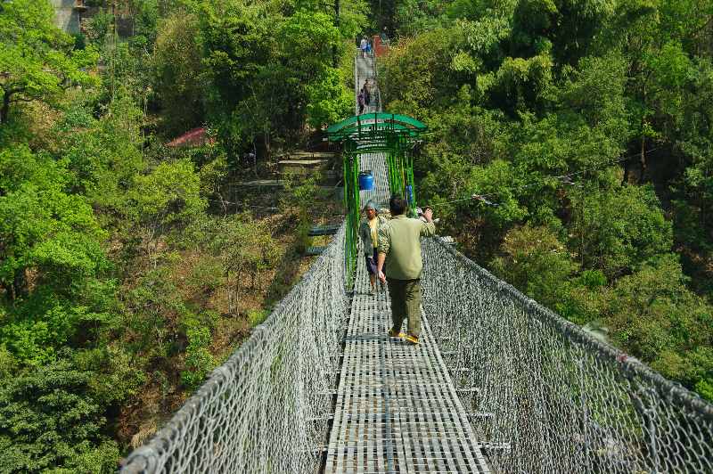 Hier ein Bild der öffentlichen Toiletten, dann eines aus dem Auto und eines von den zahlreichen Hängebrücken, die tatsächlich noch die einzige Verbindung zwischen Dörfern herstellen und auf denen so gut wie alles in riesigen Körben transportiert wird.
