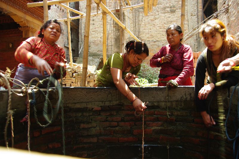 Die Frauen in der Siedlung müssen sich wirklich noch um Wasser mühen, während zahlreiche Touristen, ausgestattet mit modernem Equipment, wie auch wir, sie beobachten.