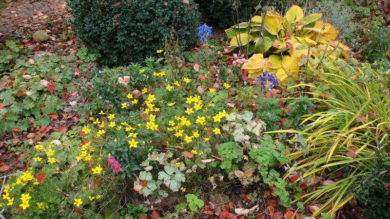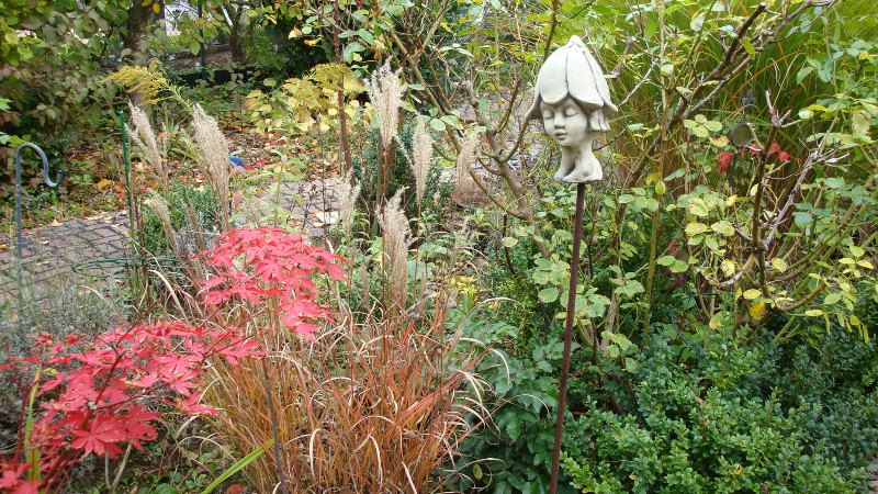 Außer Laubsammeln habe ich noch nichts gemacht - hier wachsen noch Paprika, Gurken und Tomaten, Mangold, Karotten und Salat >""§