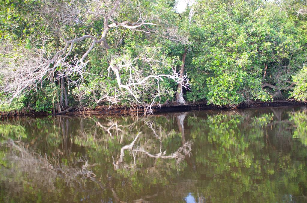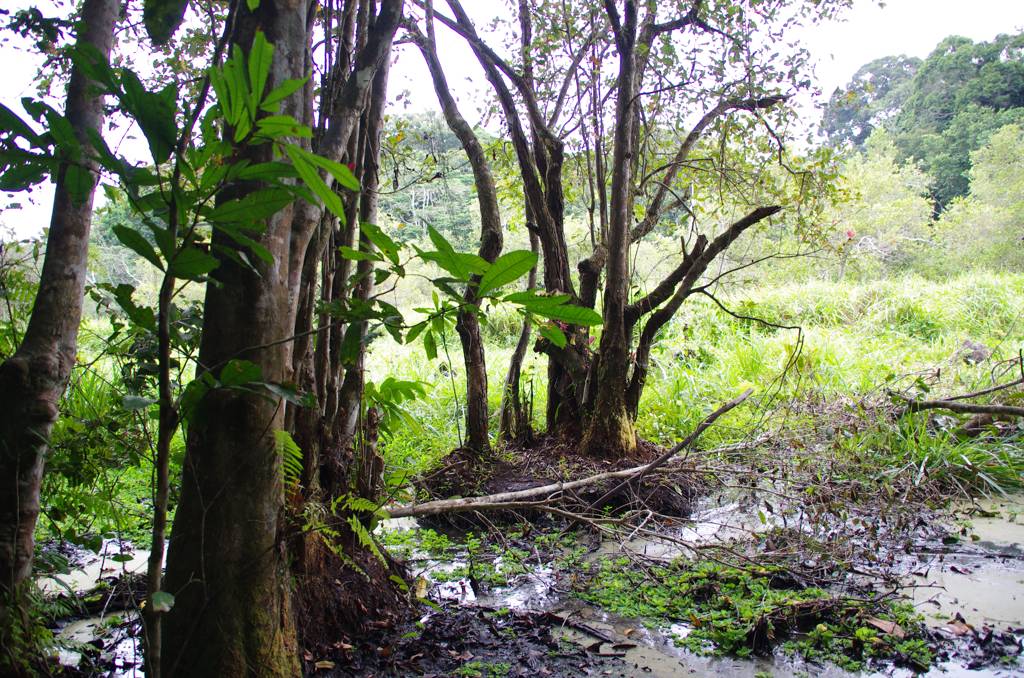 Nach ca. 10 Metern im Swamp, balancierend über kleine, biegsame Ästchen und rutschend über moosbedeckte Stämme in den Mangroven habe ich aufgegeben. Wir waren beide wadenhoch eingesunken, mein Schuh war aufgegangen und die Guides steckten bis zum Oberschenkel fest.