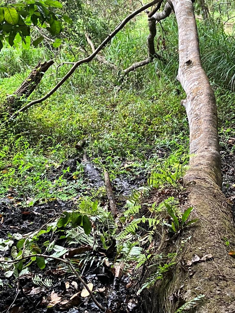 Von den Leuten am Vortag wusste ich, dass der ca. 1,90m große Mann fast bis zum Hals in der schwarzen Brühe versunken ist.