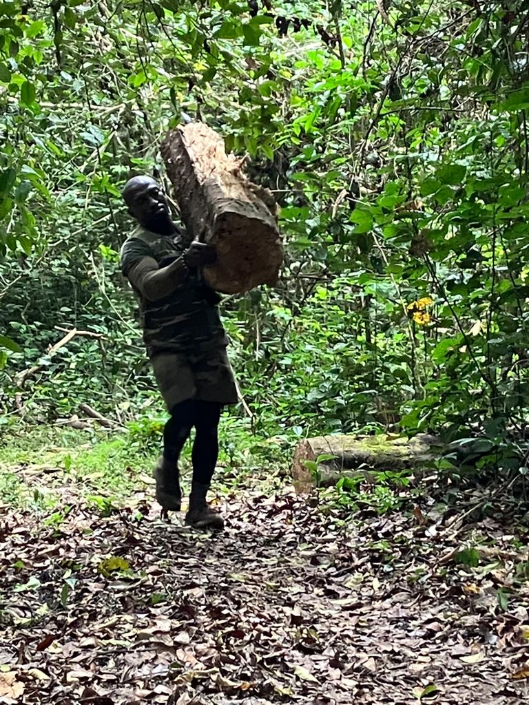 Deborah, Biologin aus Turin, hat uns schon erwartet und die Regeln erklärt: 2 Guides laufen vor, sie bleibt hinten. Wenn ein Waldelefant kommt, so schnell wie möglich zu ihr rückrennen.