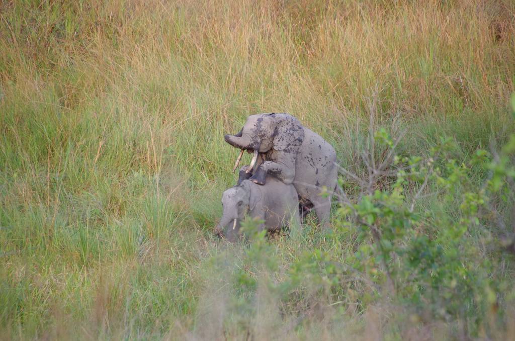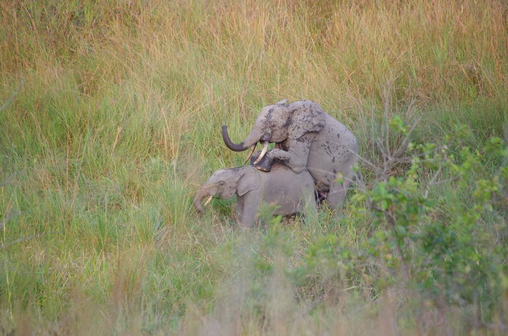 Nach einer guten Stunde wurde die Familie gefunden ( 3 Fährtenleser gehen Stunden vorher los und suchen) und wir sollten den Sumpf in der Inselmitte an seiner schmalsten Stelle queren.