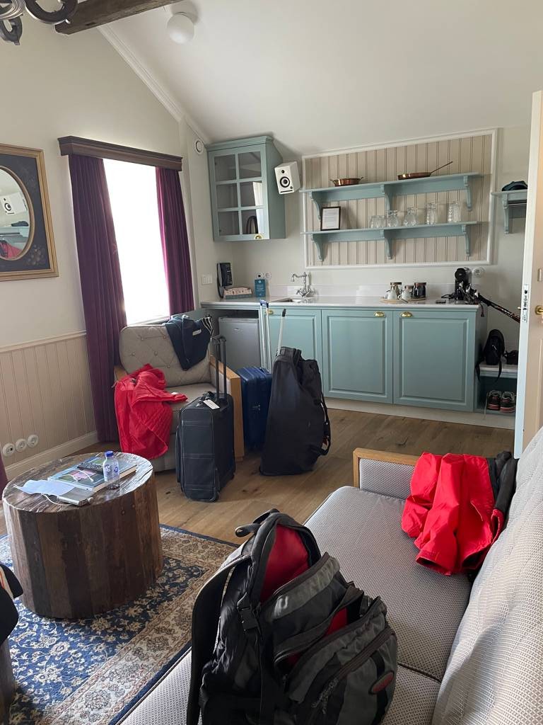 Erneut bekamen wir ein Upgrade, eine Suite im kleinen, alten, restaurierten Nebenhaus, Preis heute 65.000 ISK = ca. 520€!