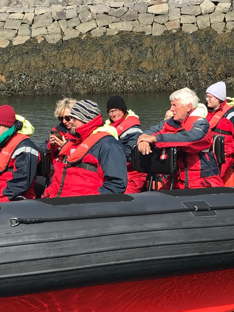 Die Overalls waren noch kompakter als die bei Husavik, denn es ging mit dem Rennschlauchboot los, max. 12 Personen und näher komme man nicht.