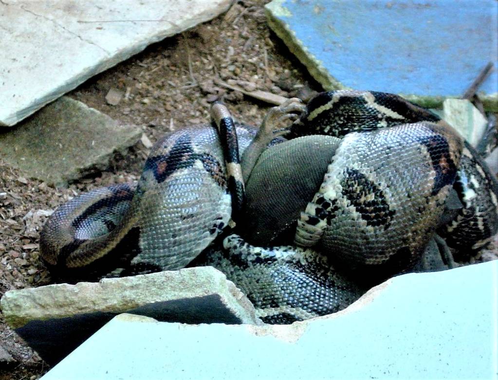 Würgeschlangen ohne Frosta-Menü müssen sich selbst versorgen, diese hat vor meinen Augen einen frischen Waran ergattert.