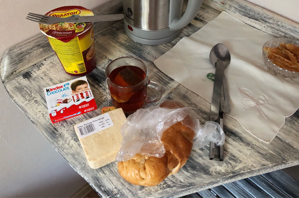 Instantsuppen gehen ja immer und der Käse füllt jetzt häppchenweise dem Magen.