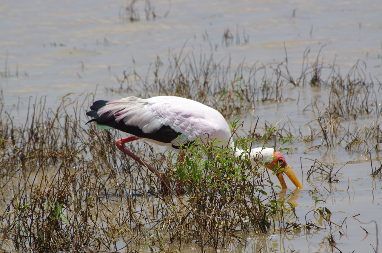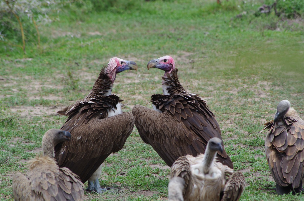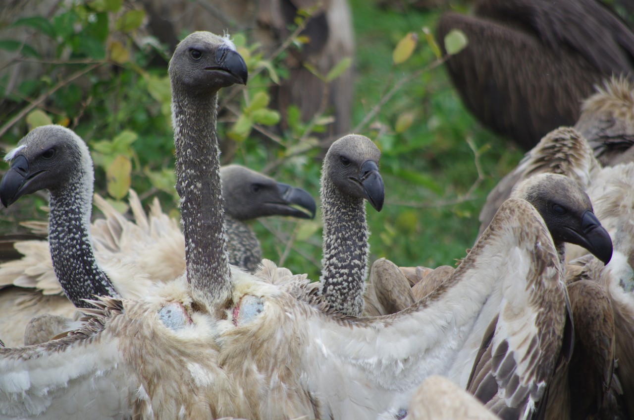 Diese neugeborene Giraffe wurde in ca. 20 Minuten von über 50 Geiern zerhackt, die Marabus haben sich die herumfliegenden Stückchen geholt.