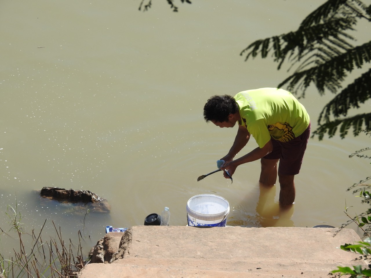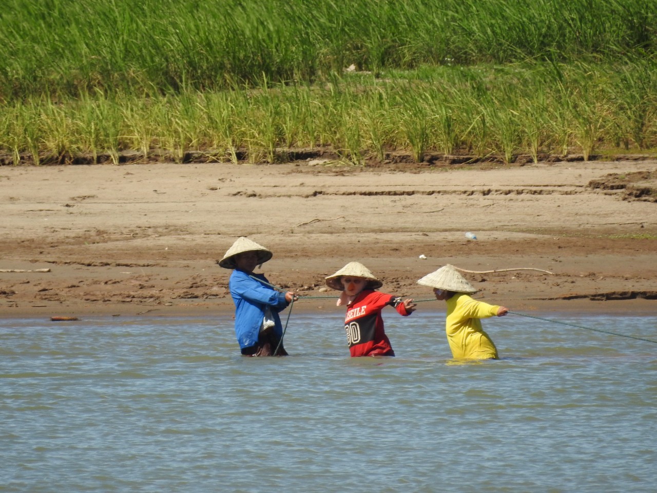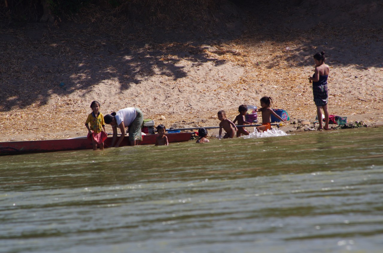 Im Süden waschen die Leute sich, die Wäsche und das Geschirr im Mekong.