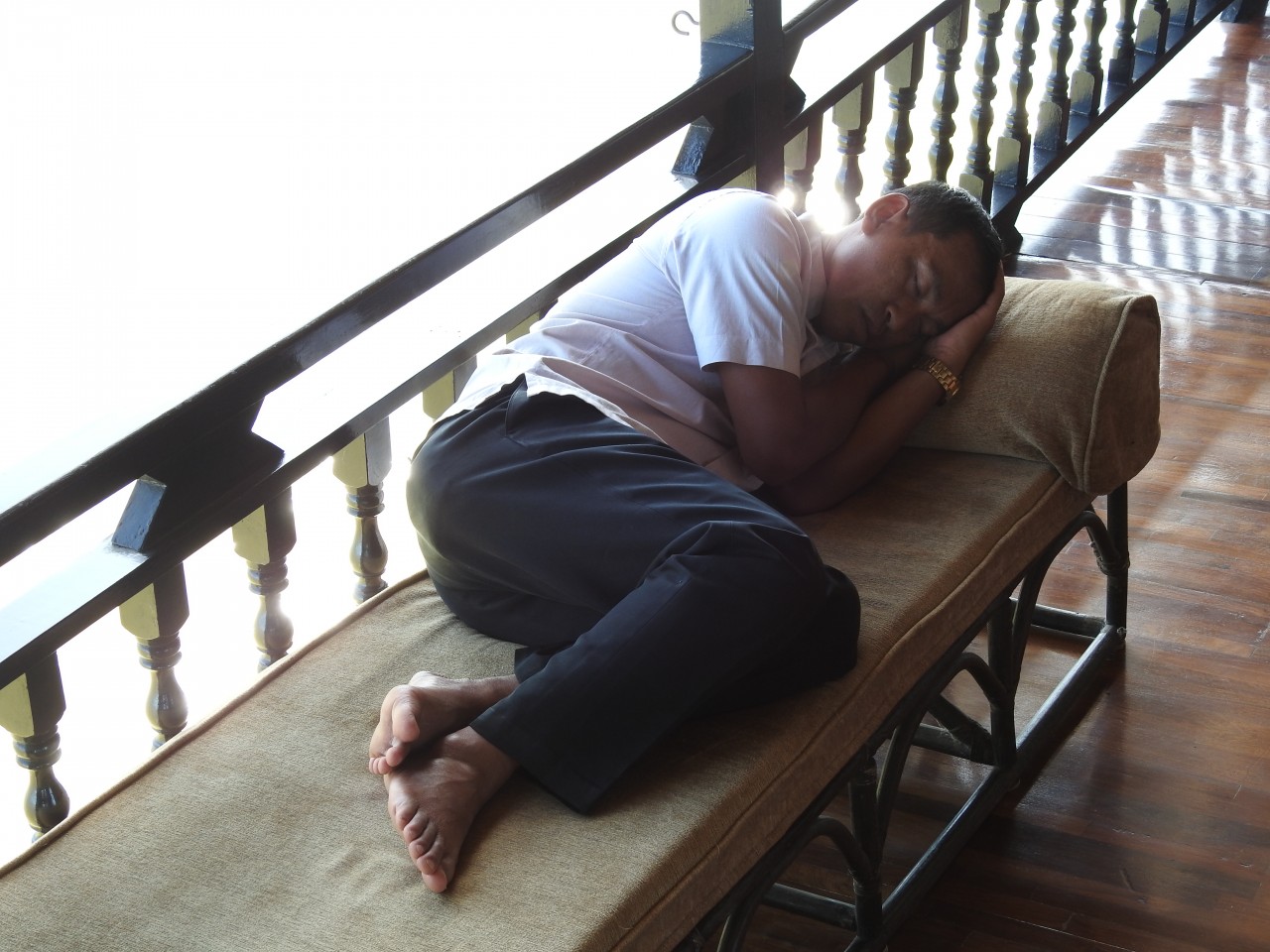 Nach 3 Tagen in Vientiane sind wir weiter nach Pakse geflogen, haben im Pakse Hotel ein super Zimmer bezogen und uns beim Dinner fast den A... abgefroren: Sturmtief aus Vietnam.