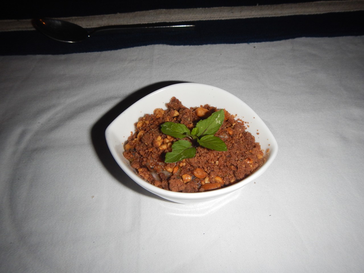 Und nicht als Hauptbestandteil eines gemahlenen Fischgerichts, was aber original laotisch ist.