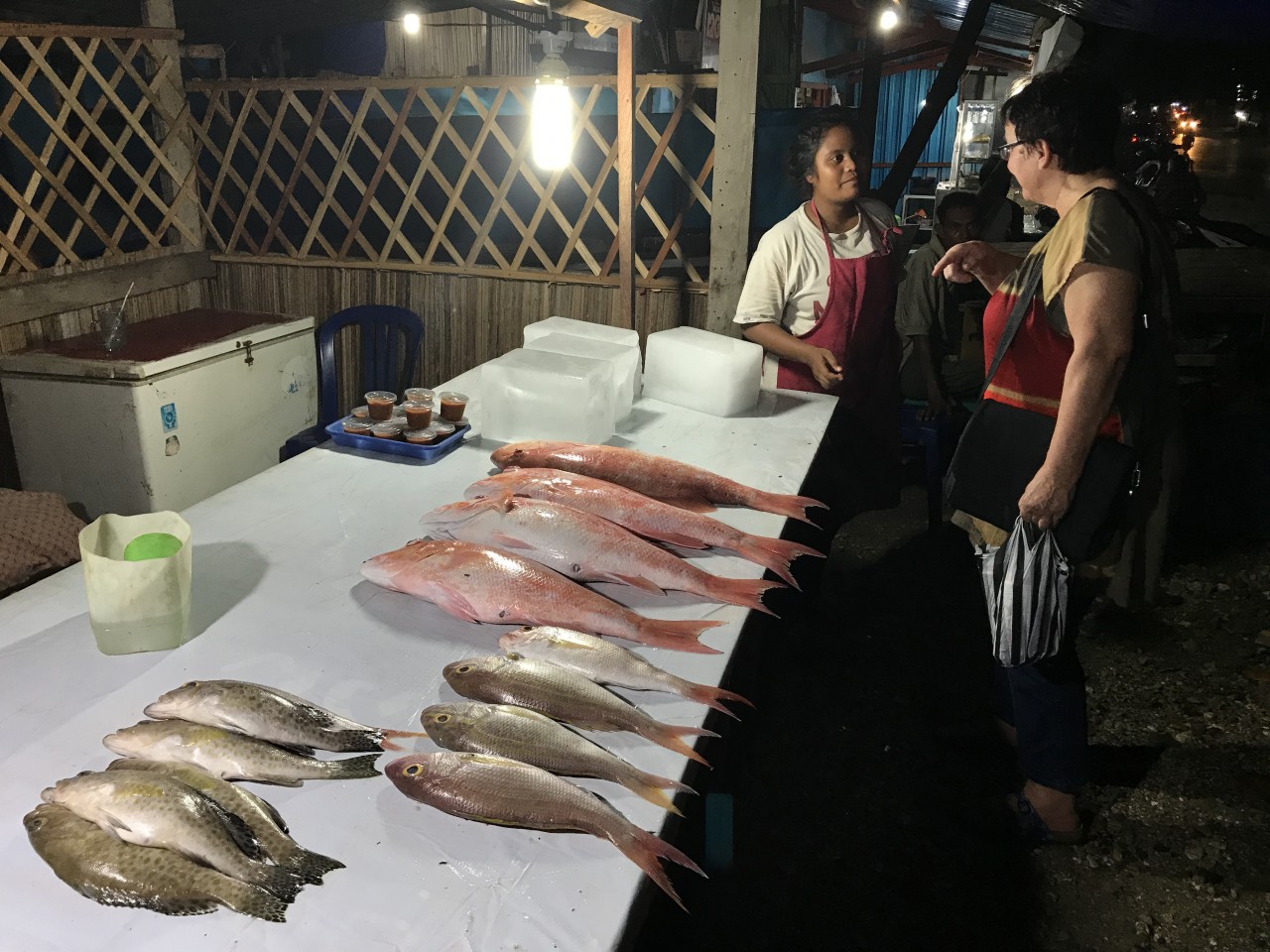 Alami Alor (den selbst gerösteten Kaffee der Eco-Lodge haben wir heute in den Automaten gefüllt) und Nachtfischmarkt in Kupang.