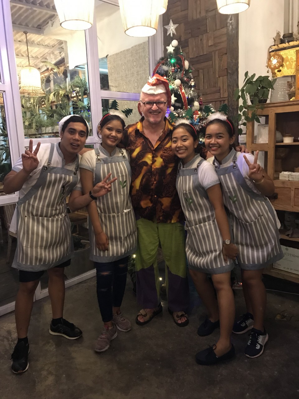 Nur als Anmerkung: Wolfgang zieht sich immer so an, dass er entweder nicht als potenzielle Beute identifiziert wird oder punktet gerade mit solchen Kombinationen bei den einheimischen Frauen in Asien und Afrika.