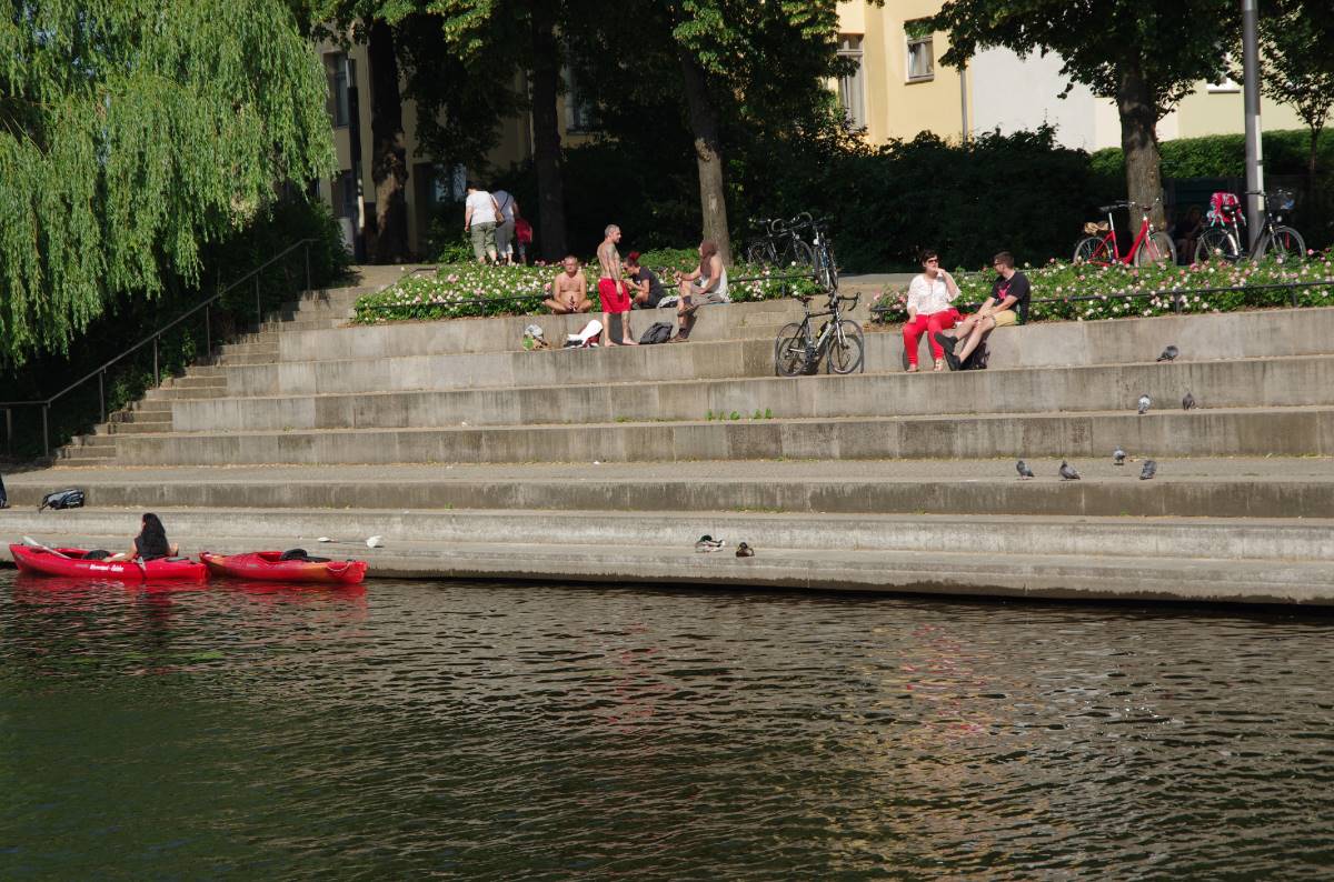 Samstag in Berlin: Die Spree ist voll mit diversen Schiffen und feiernden hauptsächlich jungen Leuten. Aber auch eine Hochzeitsgesellschaft, wohl 2. Ehe, schipperte vorbei.
