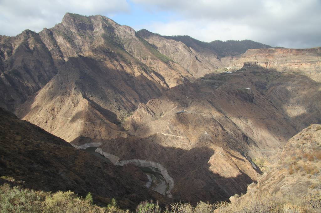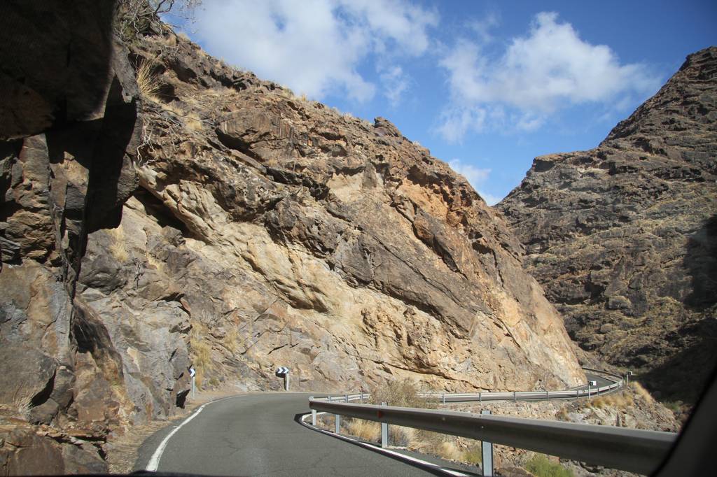 Dann weiter mit der GC 210, die in La Aldea anfängt, wobei die Durchfahrt von La Aldea ziemlich verwirrend und eng ist. Aber letztendlich finden wir die Straße, die in Richtung Artenara ausgezeichnet ist.