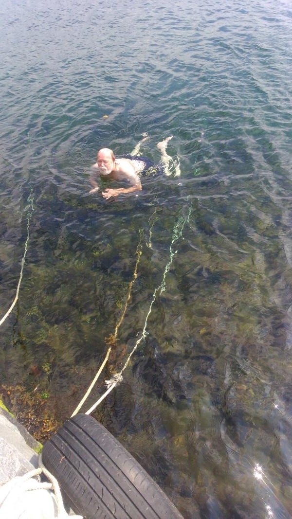 Er meint Temperatur wie in Malaga, da waren es 16 Grad. Morgen müssen wir mal das Wasserthermometer reinhalten. Ich halte mich heute zurück...