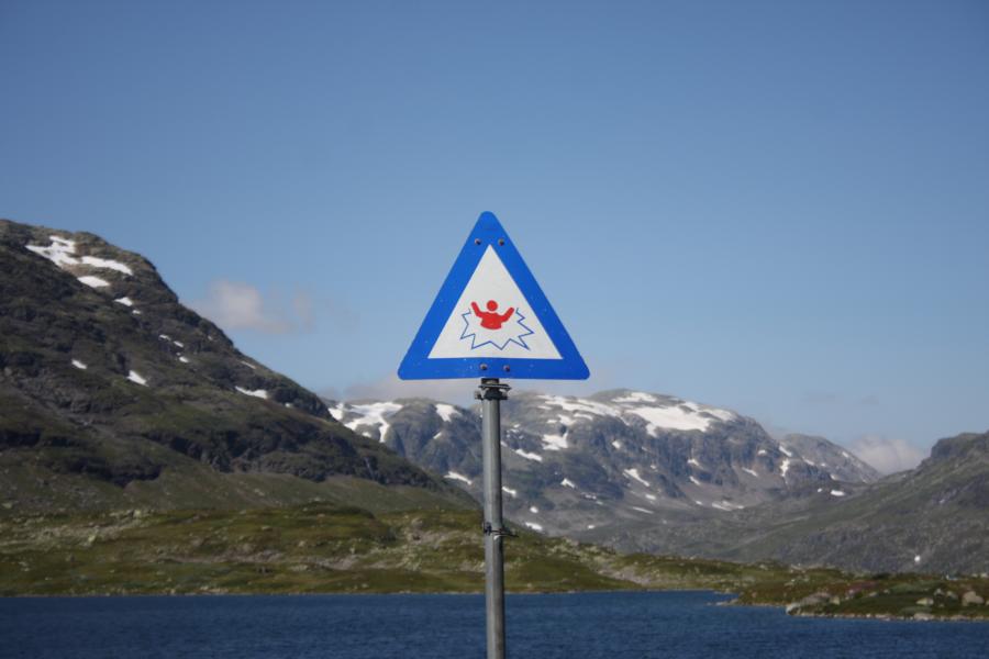 Auf der anderen Seite, in Jondal, kaufen wir ein. Von Jondal fahren wir durch zwei irre lange Tunnel, einmal 10 km, einmal 11 km. Irgendwo mittendrin steht, dass wir 100 Kronen zu zahlen haben...