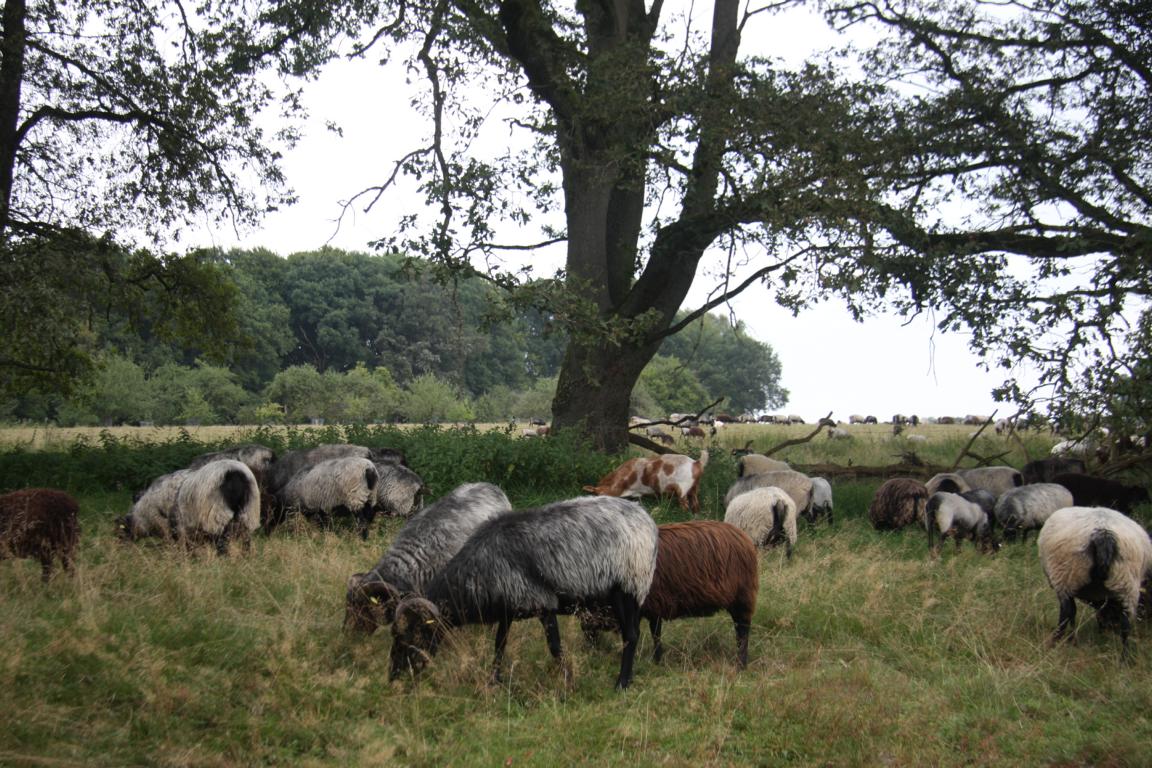 Und zur Heide gehören auch die Schafe - wir haben Glück und begegnen einer großen Herde
