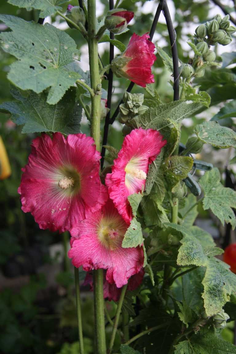 In diesem Jahr hat das erste Mal die Palmlilie geblüht. Ein Traum. Leider habe ich vergessen ein Foto zu machen und jetzt ist sie schon fast verblüht. Dafür gibt es ein paar Stockrosen