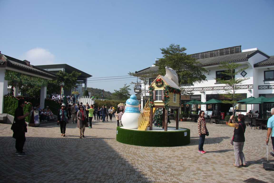 Der Ort, wo die Seilbahn endet, heißt NgongPing und hier ist echt die Hölle los- und vor allem echt viel Weihnachtsgedöns, einschließlich Weihnachtsmusik.