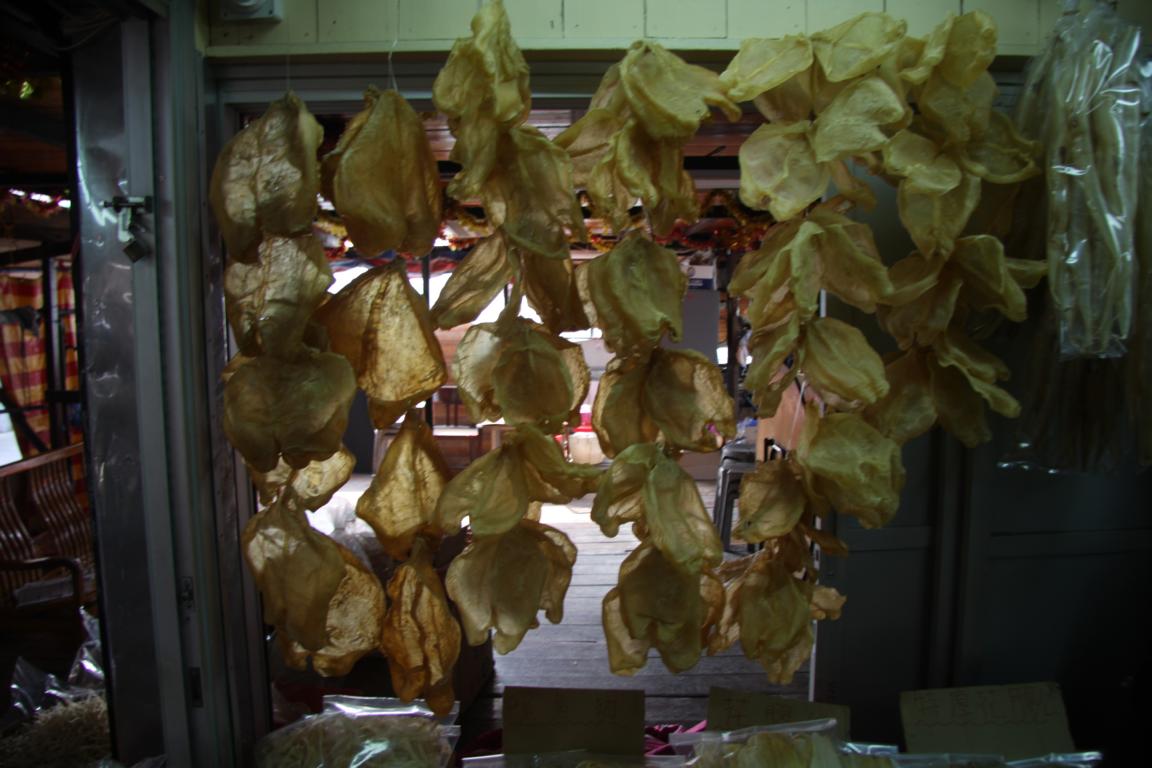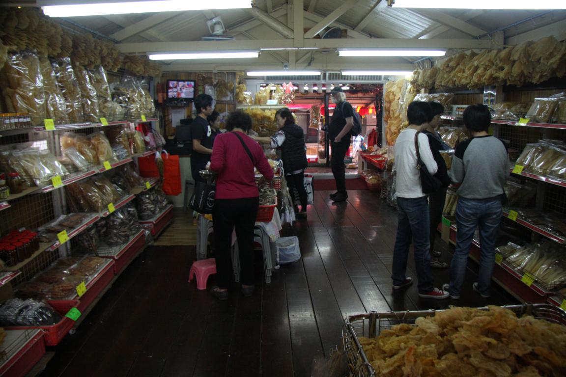 Kaum sind wir dem Busterminal entronnen, tauchen wir in eine ganz andere, sehr asiatische Welt. Zu Beginn finden sich zahlreiche Stände mit unglaublich getrocknete Sachen aus dem Meer. Leider habe ich hier die falsche Belichtung gewählt, so dass nur wenige Aufnahmen etwas geworden sind. Die Vegetarier unter uns werden sich darüber freuen