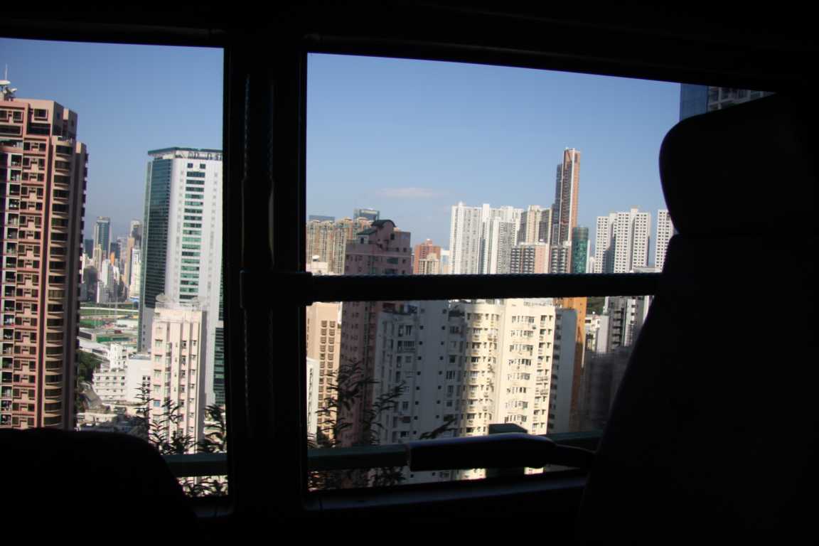 Es ist ca. 16.30, als wir an der Tramstation ankommen - Sonnenuntergang wollen wir hier heute nicht erleben. Es gibt nicht viele Fahrgäste und so entschließen wir uns für 32 Hongkongdollar mit Oktopus mit der Tram abzufahren - ich muss sagen, war ok, dass wir es gemacht haben. Wenn man es nicht macht, hat man nichts verpasst. Großartige Aussichten gibt es kaum, da alles zugewachsen ist.