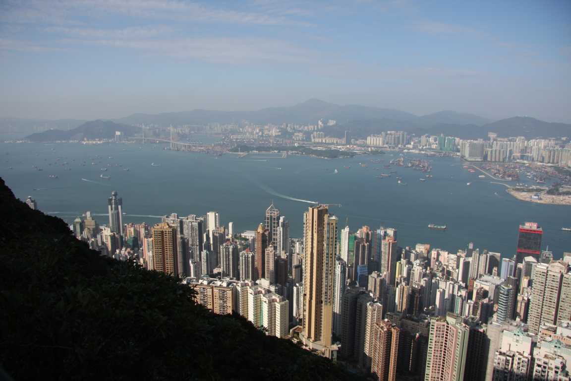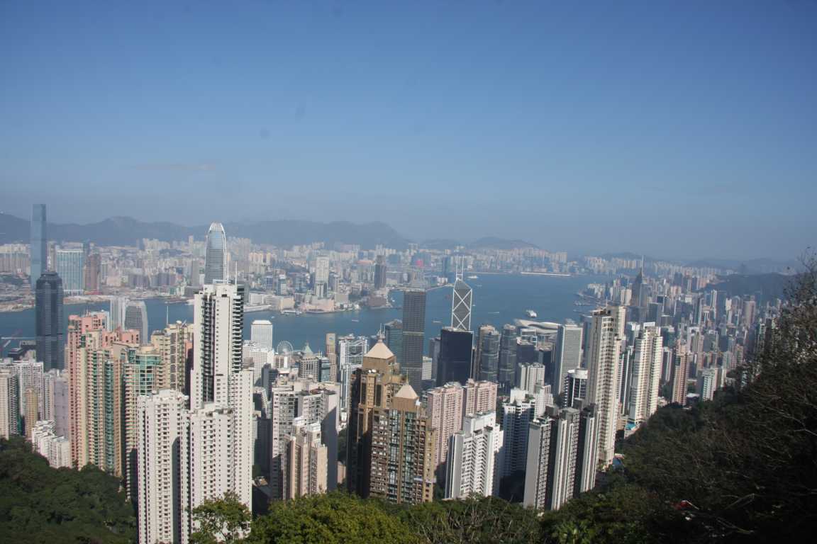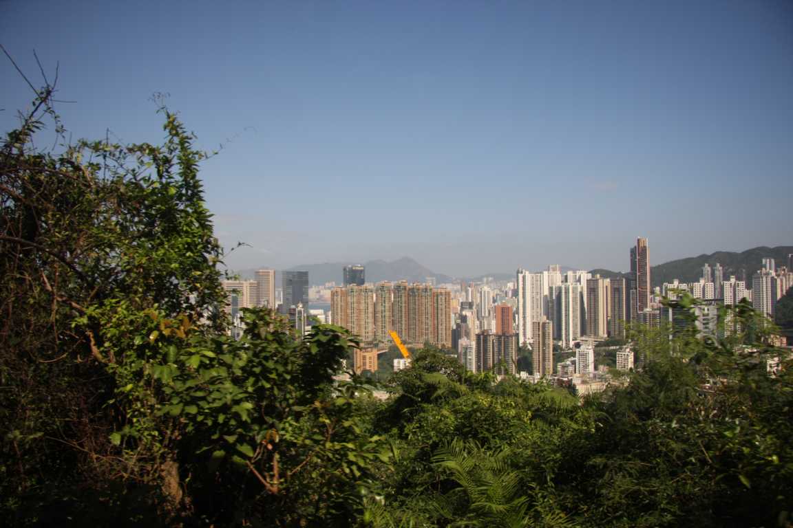Eigentlich wollen wir zum Victoria Park, entscheiden uns aber um und laufen eine ganze Weile die Lugard Road, einem kleinen Wanderweg, entlang, von dem man nach einer kleinen Gehstrecke ganz fantastische Ausichten auf Hongkong erhält -