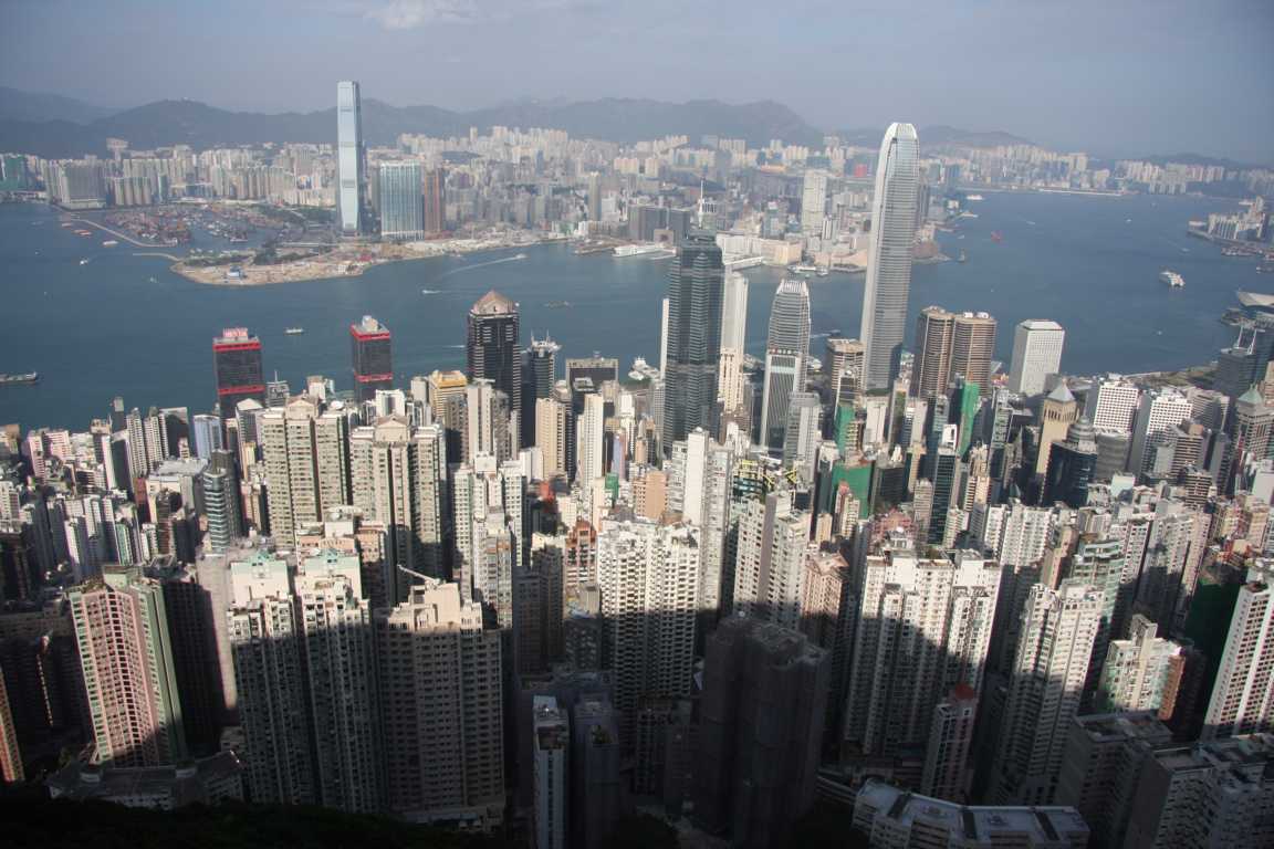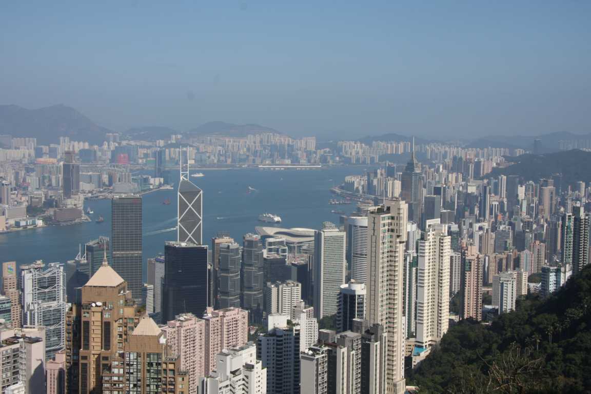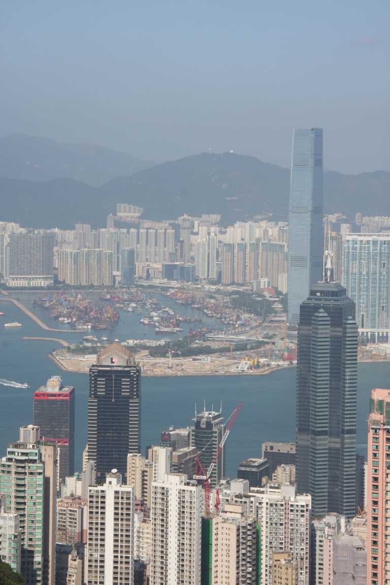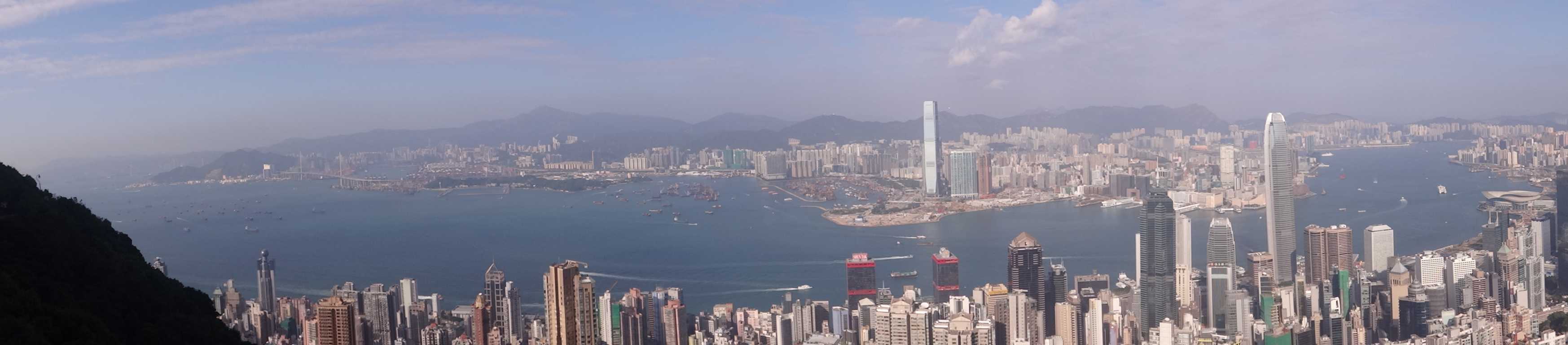 Eigentlich wollen wir zum Victoria Park, entscheiden uns aber um und laufen eine ganze Weile die Lugard Road, einem kleinen Wanderweg, entlang, von dem man nach einer kleinen Gehstrecke ganz fantastische Ausichten auf Hongkong erhält -