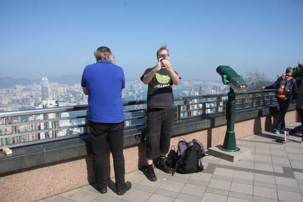 Okke macht sich den Spaß und macht es wie ein typischer Hongkongnese: Er macht mit dem Handy ein Selfie -
