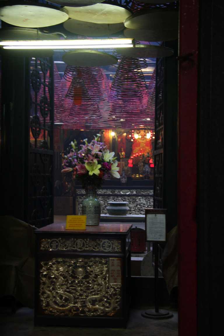 Unten entscheiden wir uns mit der Metro noch Richtung eines Tempels und zum Jademarkt zu fahren. Dafür steigen wir bei der Station Yau Ma Toi aus - dort ist es schon nach 17 Uhr. Der Tempel sollte eigentlich bis 18 Uhr aufhaben (der Jademarkt auch), aber wir haben den Eindruck, es wird bereits gereinigt. Also gibt es nur einen kleinen Einblick -