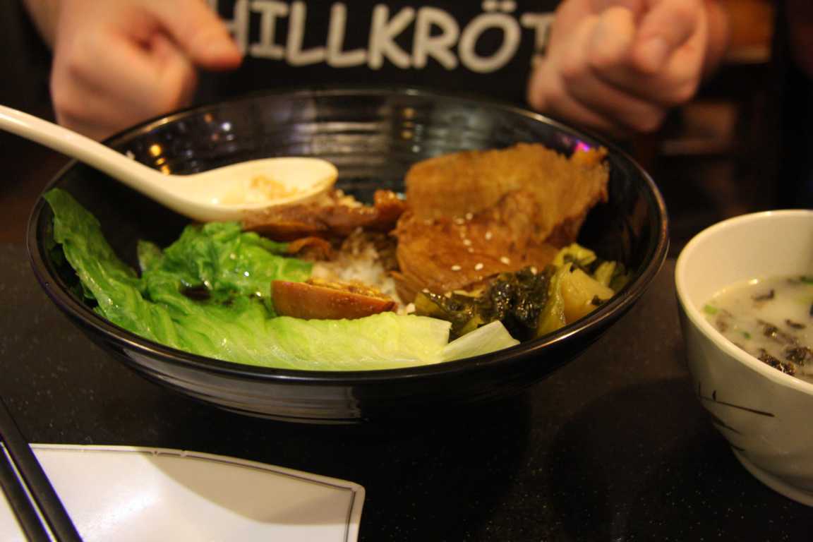 Es ist erst 18.15 und wir sind im Bereich des Nachtmarktes, der ab 20 Uhr laufen soll, aber bereits voll im Gang ist. Nur dazu haben wir heute keine Lust mehr. Wir gehen Richtung Nathan Road und laufen eine Paralellstraße entlang, um ein Restaurant zu finden, was uns auch gelingt. Wir essen sehr sehr lecker.